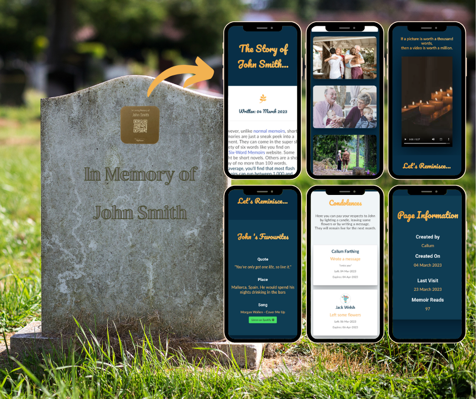 Visitors can then scan the code on the plaque to bring up the inspiring memoir page and pay their respects.
